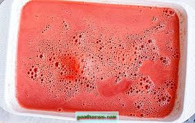 7. إذا كنت لا تريد البطيخ في مكعبات الثلج ، قم بعمل جرانيتا فاترة. فقط اهرس البطيخ. امزجه مع بعض الزنجبيل وعصير الليمون وعصير الليمون. ثم جمدها. قم بتقليبها كل نصف ساعة أو نحو ذلك وستحصل على حلوى رائعة مثل السلاش.