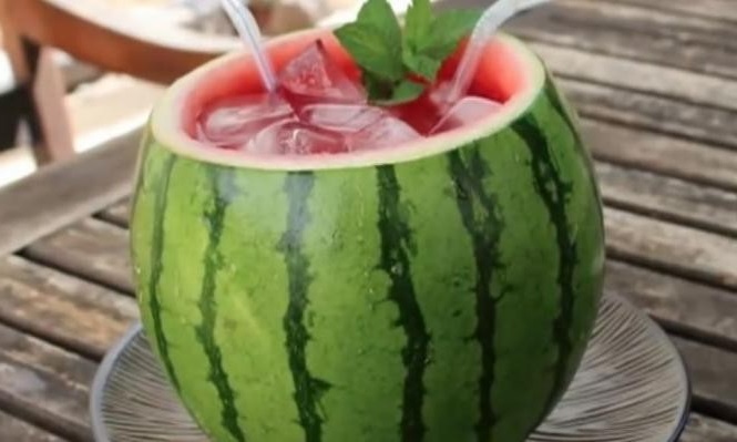 3. اصنع شراب منعش من البطيخ. سواء كان مارتيني البطيخ أو مجرد مشروب ماء فوار مزين بالبطيخ المفضل لديك ، فمن المؤكد أنه سيساعدك على التغلب على الحرارة هذا الصيف.